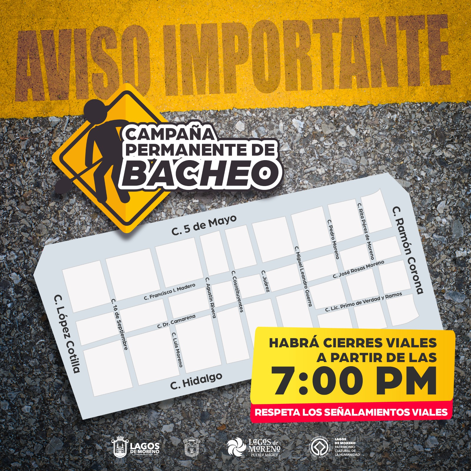 El día de hoy, a partir de las 19:00 horas, la cuadrilla atenderá las siguientes vialidades: