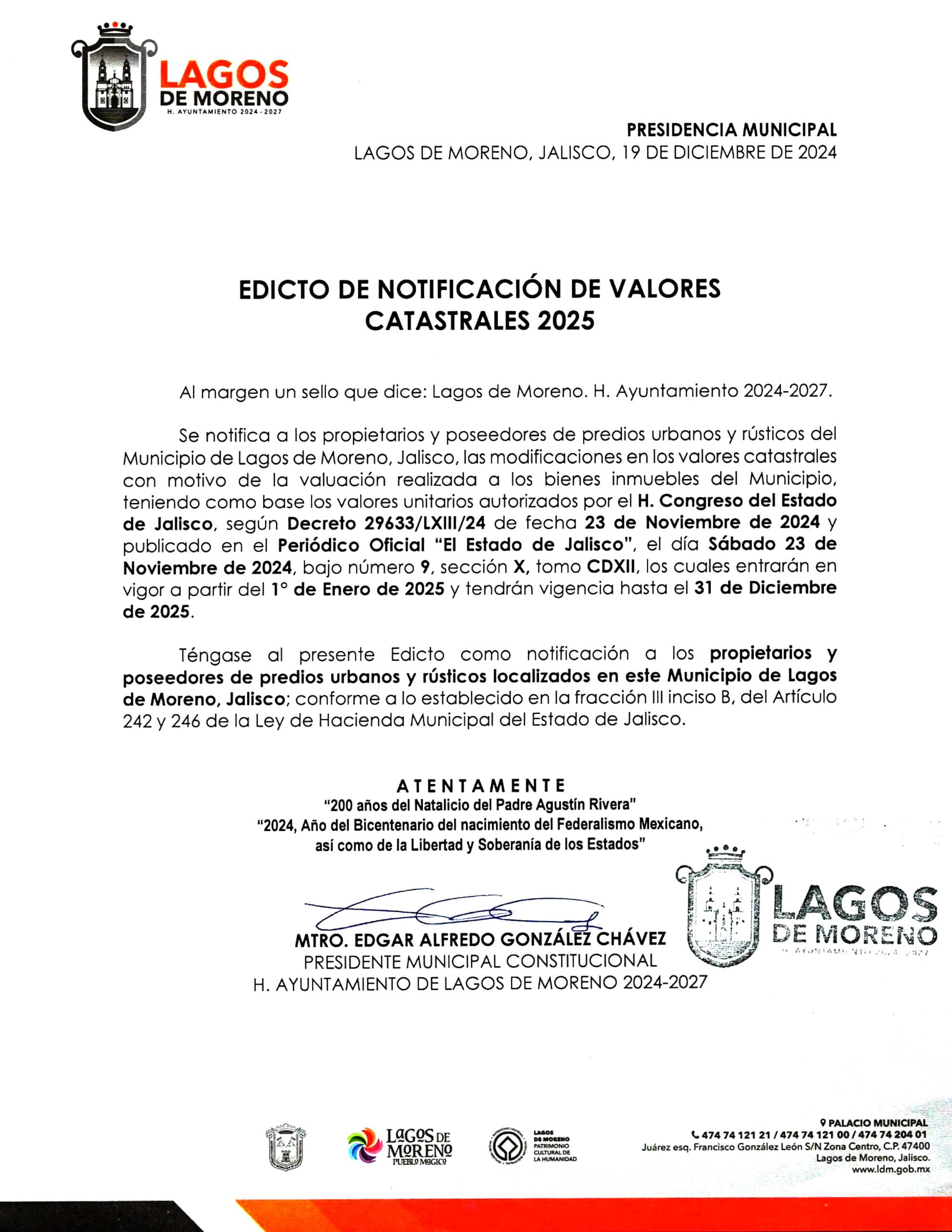 Edicto de notificación de valores catastrales 2025