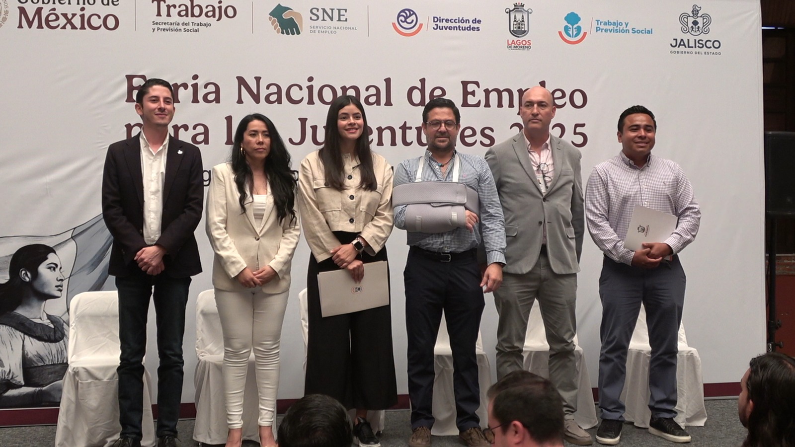 En el acto protocolario, en el presídium estuvieron presentes el Lic. Gabriel Arias Salles, Director General del Servicio Nacional del Empleo Jalisco; el Mtro. Julián Hernández Crisanto, Jefe de Gabinete; el Ing. José Alejandro Garay Pérez, Coordinador General de Economía; María Elisa Bravo Navarro, Directora de Juventudes Jalisco; el Lic. Sergio Antonio Anaya Martínez, Director Operativo del SNEJ; y la Lic. Emilia Vázquez Centeno, Directora de Desarrollo Económico, quienes destacaron la relevancia de generar oportunidades concretas para el desarrollo profesional de las juventudes.